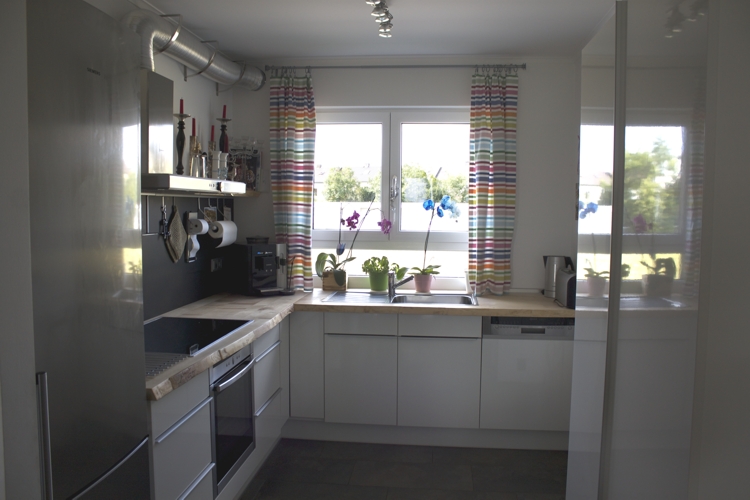 Rückwand über der Arbeitsfläche mit Tafellack beschichtet, magnetisch
